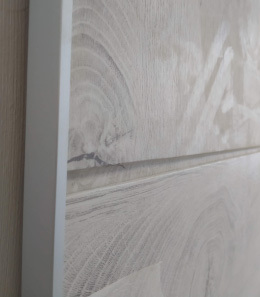 Коллекция с примоугольным исполнением панелей. Сборка панелей осуществляется по системе «Коннект» через шип-паз, офомрление углов и при необходимости стыков стен с полом и потолком осуществляется при помощи аллюминевых профилей.
